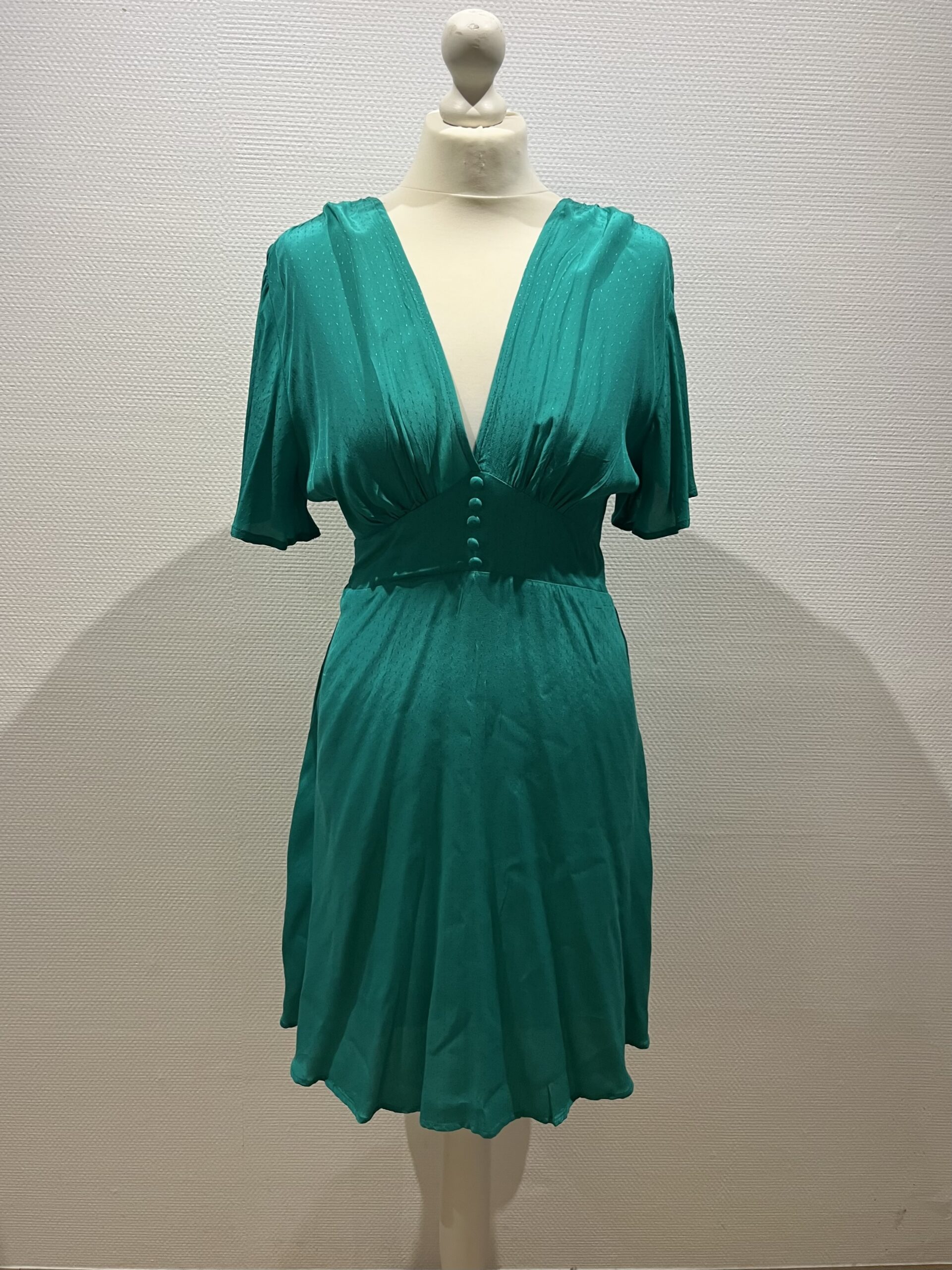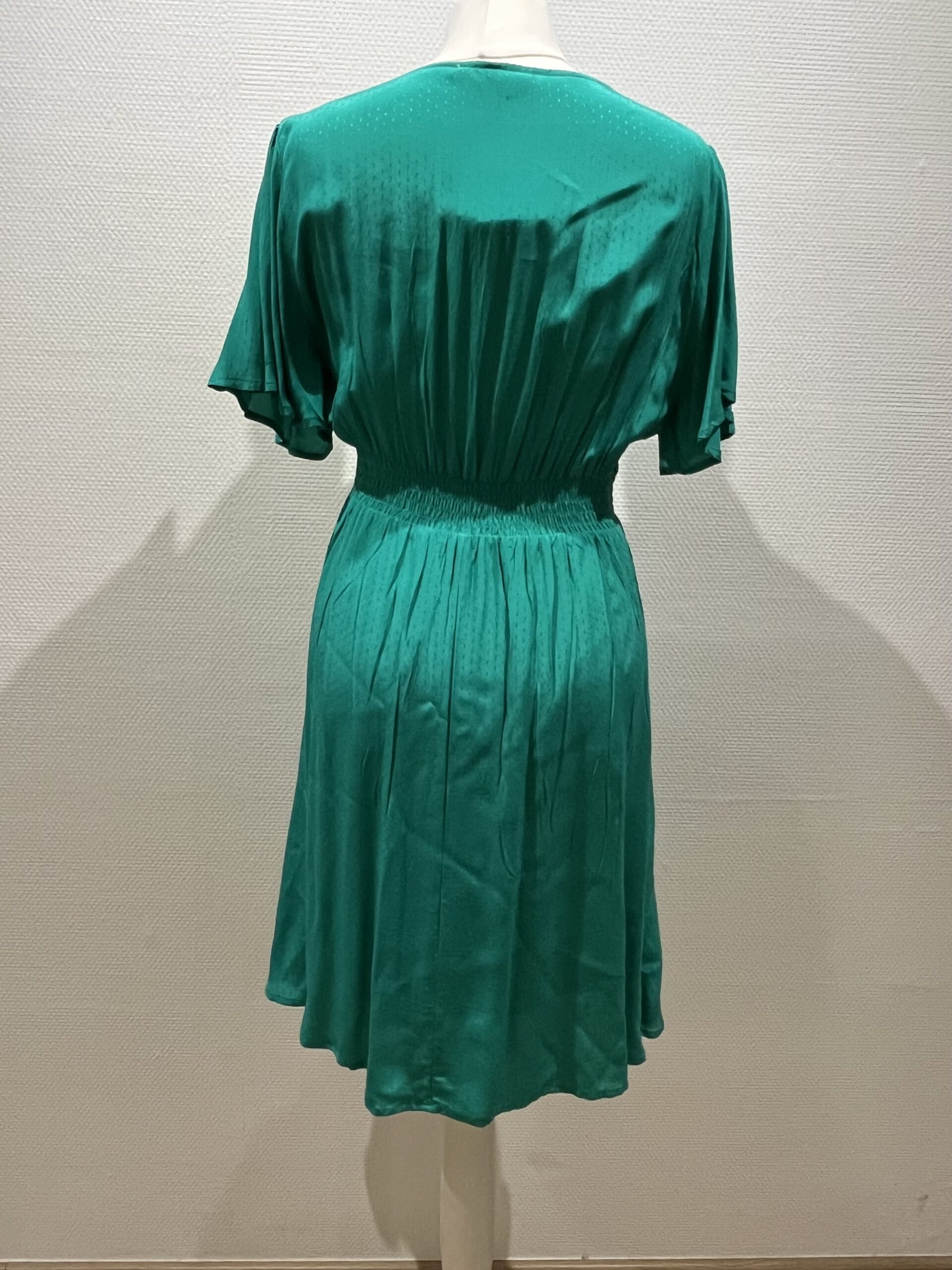 ROBE COURTE MATIERE SATIN JACQUARD, CEINTURE SMOCK